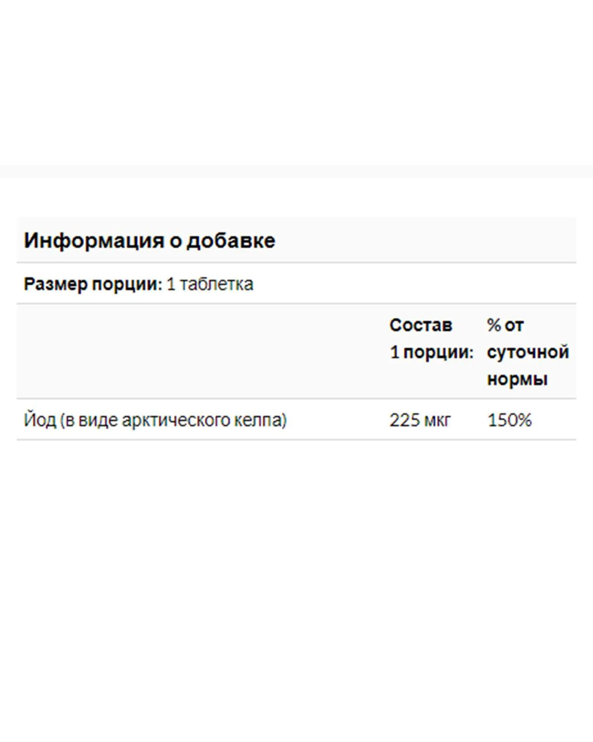 • Характеристики: 300 таблеток | 225 мкг | Келп (Ламінарія) | Arctic-Kelp