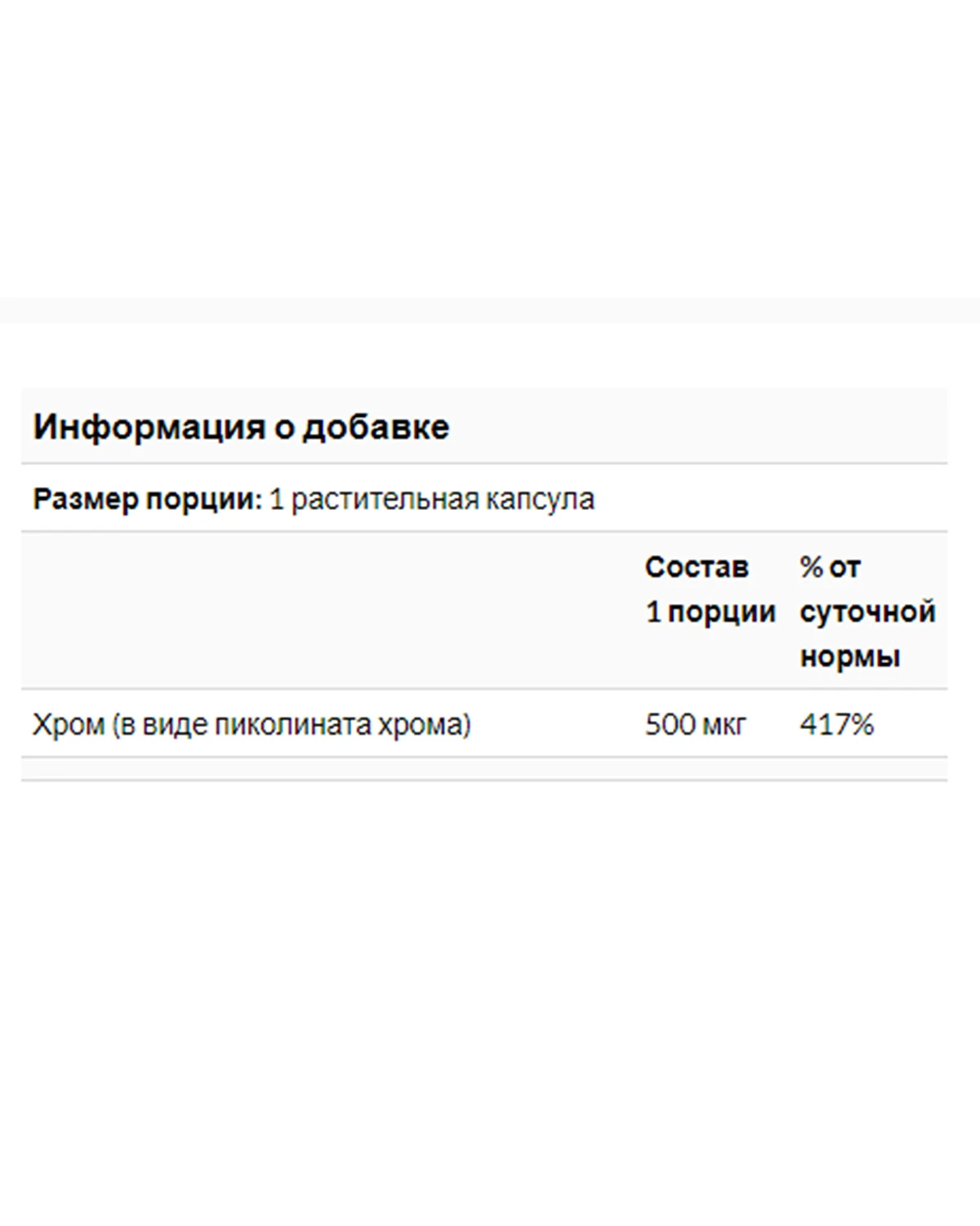 • Характеристики: 120 капсул | 500 мкг | Хром піколінат