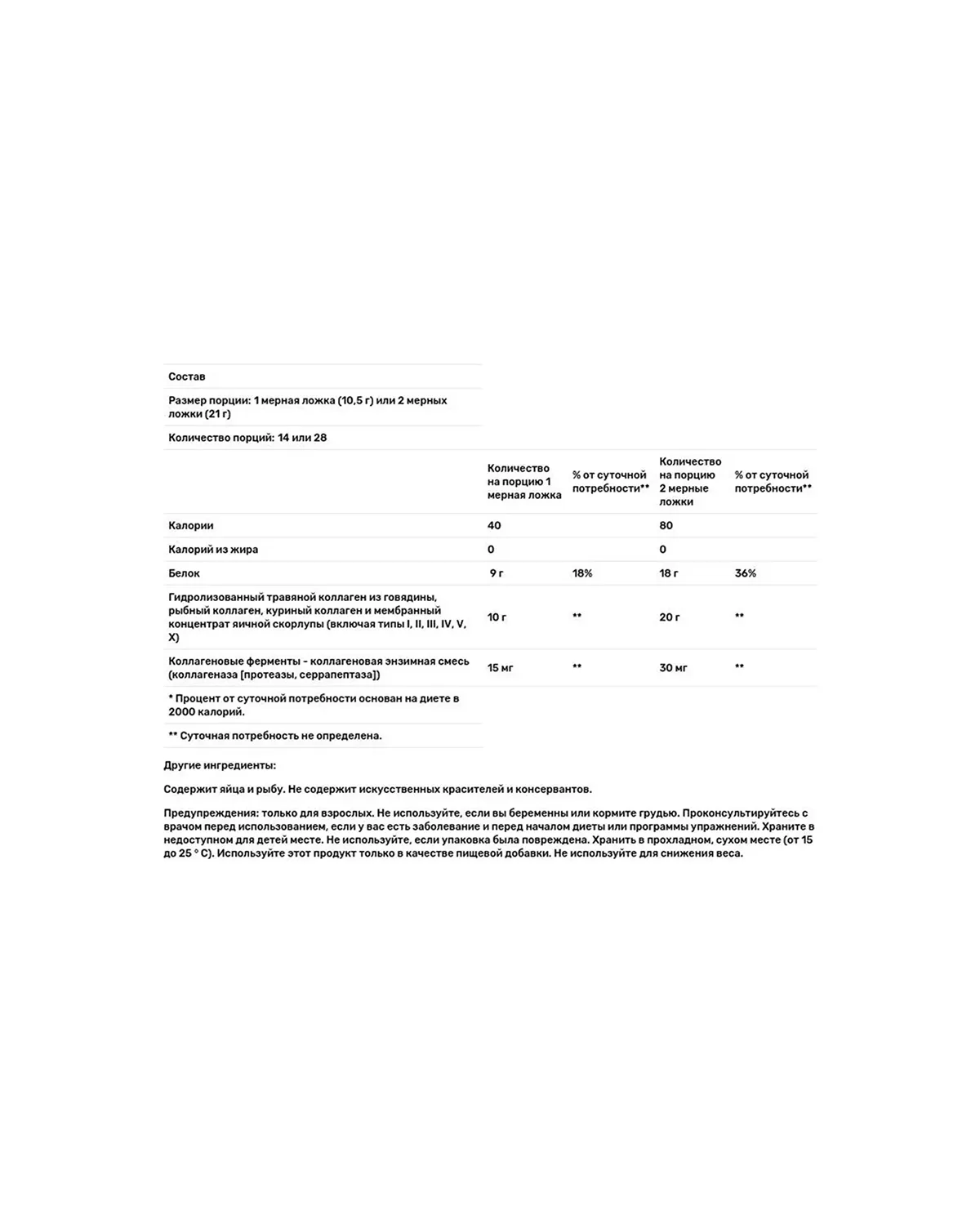 • Попередження: Містить яйця і рибу. Перед застосуванням рекомендується проконсультуватися з лікарем при вагітності, годуванні груддю або індивідуальній непереносимості компонентів. Зберігати в сухому, прохолодному місці, недоступному для дітей.
